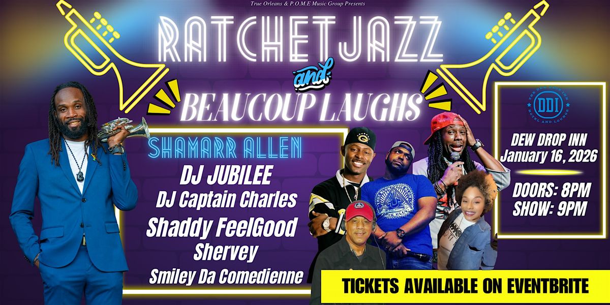Ratchet Jazz & Beaucoup Laughs- live ratchet jazz/bounce/r&b with nonstop comedy—brass, big laughs, and pure New Orleans energy all night.