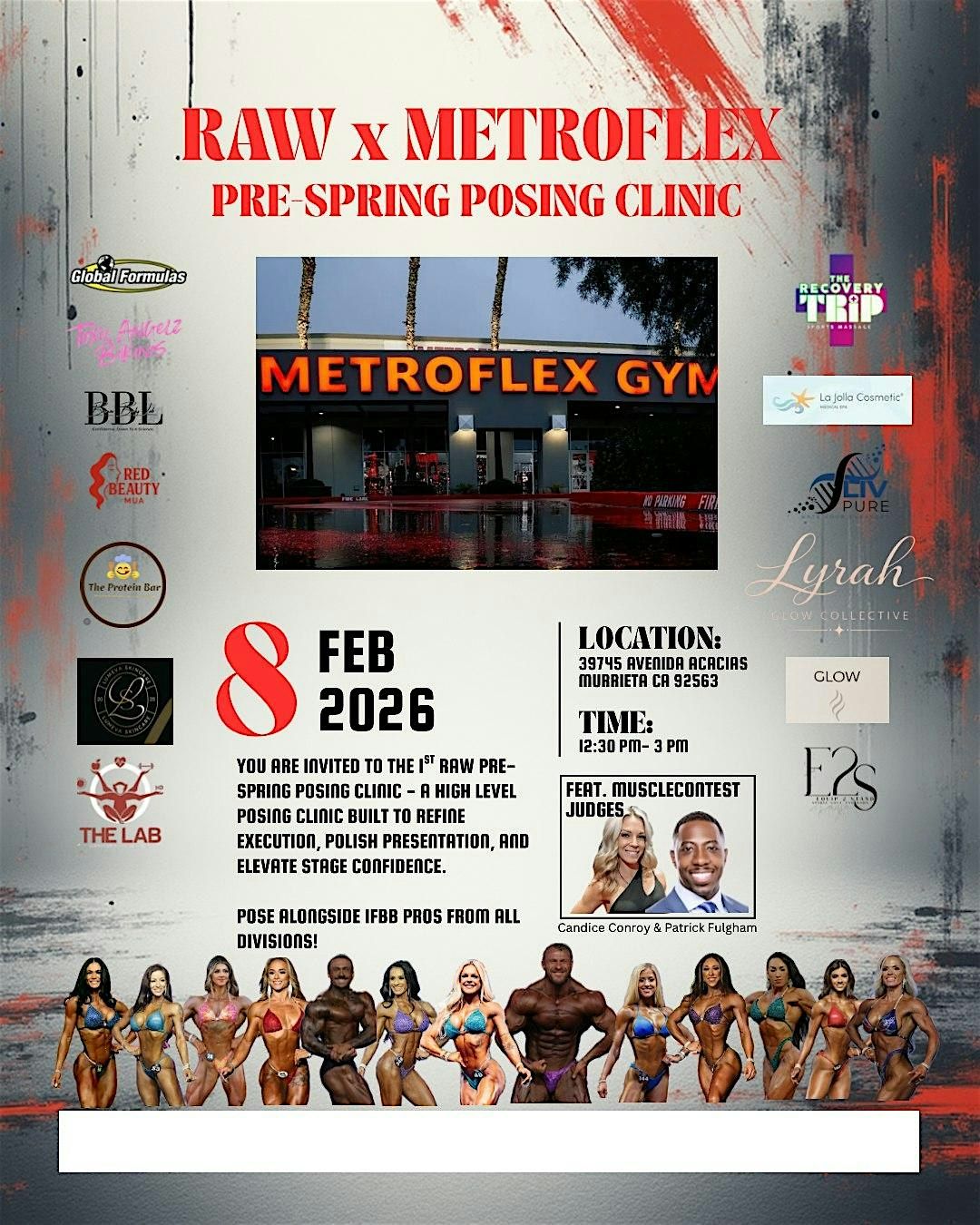 Join us in person for a fun and hands-on session where you’ll master your posing skills just in time for spring! Whether you’re a newbie or looking to refine your stage presence, this clinic is all about boosting your confidence and perfecting your moves. Don't miss out on this great opportunity to shine and connect with fellow fitness enthusiasts. See you there!