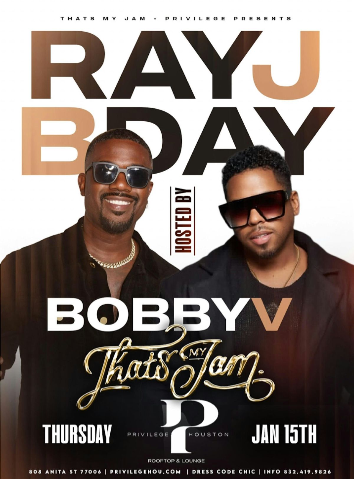 Get ready for a night of pure nostalgia and nonstop vibes as Ray J & Bobby V take over the rooftop for a Founders Day celebration you don’t want to miss. This is a grown & sexy night dedicated to the songs that raised us — That’s My Jam energy all night long.