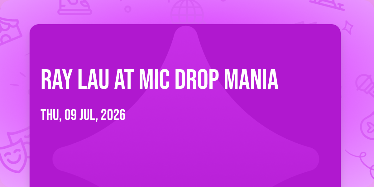🎉 Welcome to Ray Lau at Mic Drop Mania, where dreams come alive and possibilities are endless! 🏛️ Join us at Mic Drop Mania in the heart of Chandler, AZ for an event that defies expectations. 📅 On July 10th, 2026 at 07:00 PM, be part of something truly extraordinary as we bring together innovation, entertainment, and pure magic. ✨ Every aspect has been carefully designed to ensure an unforgettable experience for all our guests. Whether you're seeking adventure, inspiration, or simply a break from the ordinary, this event promises to deliver beyond your wildest dreams. 🎊 Prepare for a journey into the extraordinary!