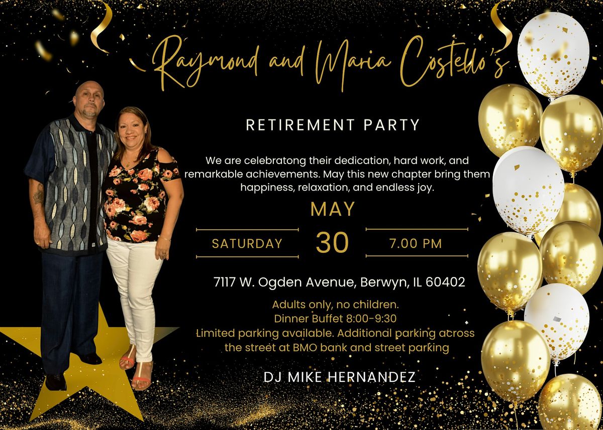 Join us for a fun, heartfelt bash celebrating Raymond and Maria’s amazing retirement journey together!About this Event