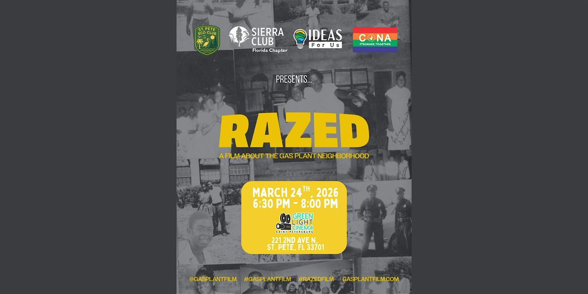 Razed is a film about the Gas Plant Neighborhood in St. Petersburg, Florida—a Black neighborhood that was destroyed to make way for a baseball stadium. The film was produced by Roundhouse Creative, in partnership with Ms. Gwendolyn Reese of the St. Petersburg African American Heritage Association, and many of the displaced former residents of the Gas Plant Neighborhood. The film's launch and distribution is supported by The Foundation for a Healthy St. Petersburg.