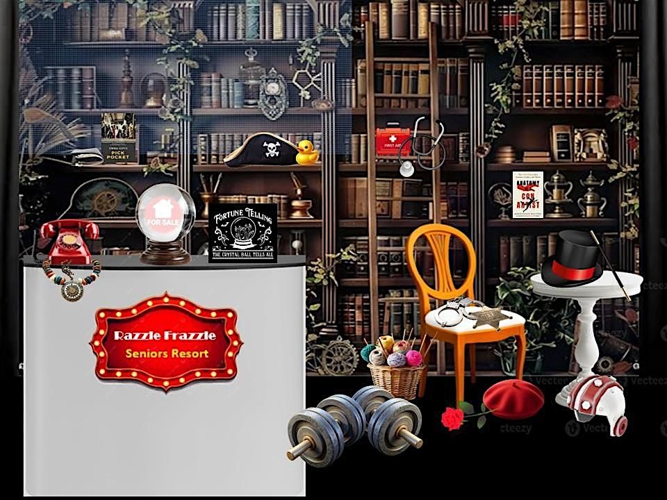 Razzle Frazzle residents include a retired Sheriff, a former Con Artist, a Magician, a see-all Medium, a compulsive Pickpocket, a jittery Mime, a circus Strongman, a hippie Receptionist, a delightful Delusionist and his Nurse, and an eavesdropping Knitter.
