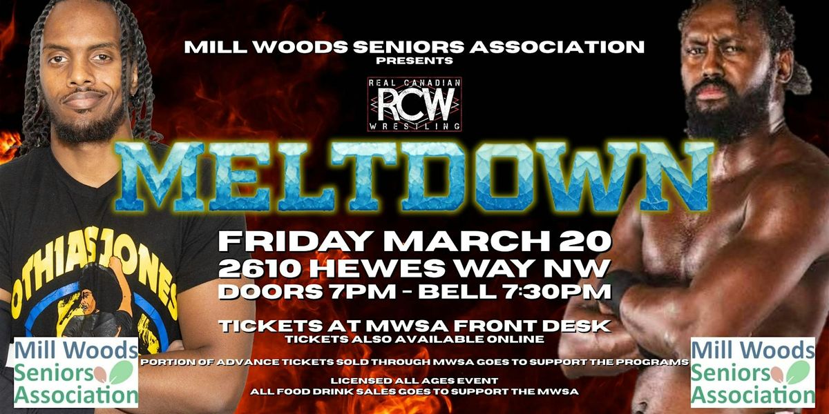 Get ready for the RCW MELTDOWN, an epic in-person event you don't wanna miss! Join us for nonstop action as we debut at the Millwoods Senior centre