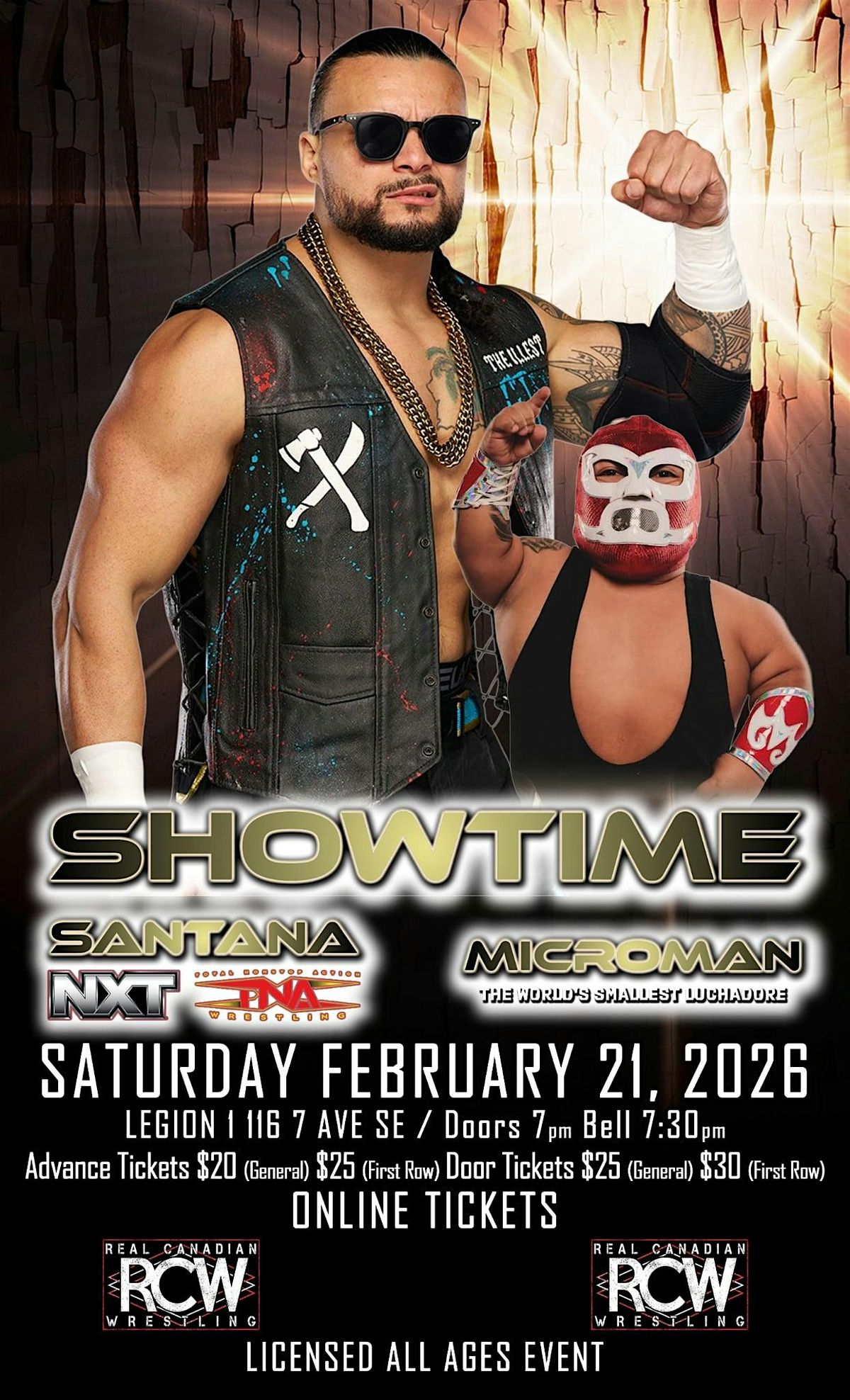RCW SHOWTIME featuring the Calgary wrestling return of TNA/NXT star SANTANA and Lucha Sensation MICRO MANAbout this Event