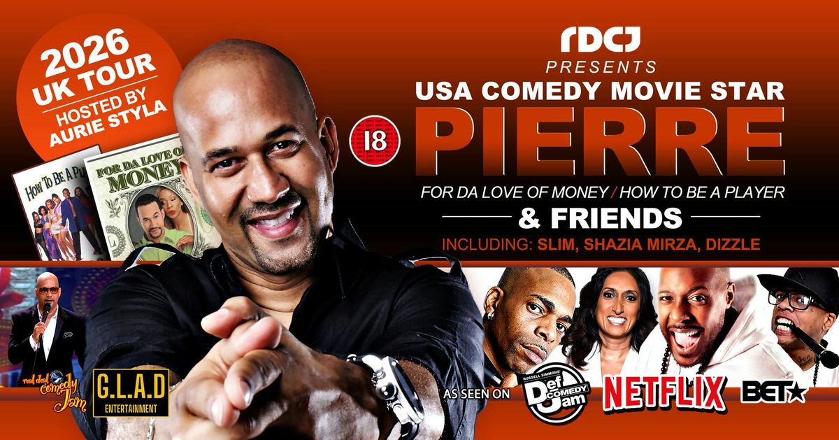 RDCJ Presents: USA Comedy Movie Star PIERRE & Friends - ManchesterOn Bank Holiday Weekend, Friday 22nd May, Manchester’s luxurious Impossible Theatre hosts international comedian and actor Pierre for one night of world-class stand-up.Best known for his iconic role in the cult classic Wash alongside Dr Dre and Snoop Dog and Pierre has also appeared in How to Be a Player (with Bill Bellamy), B.A.P.S (with Halle Berry), For Da Love of Money,. While he’s a proven screen star, Pierre truly shines live on stage with razor-sharp crowd work, fearless punchlines, and high-energy storytelling seen on Def Comedy Jam, Netflix, BET and more. "Pierre Edwards, Great Comedian... he's a funny dude" - Dave ChappelleJoining him are UK favourites Legendary Slim, Netflix Series Supercell Travis J celebrity TV personality Shazia Mirza, hosted by viral sensation Aurie Styla.Expect big laughs and unforgettable Real Deal Comedy Jam vibes all night!