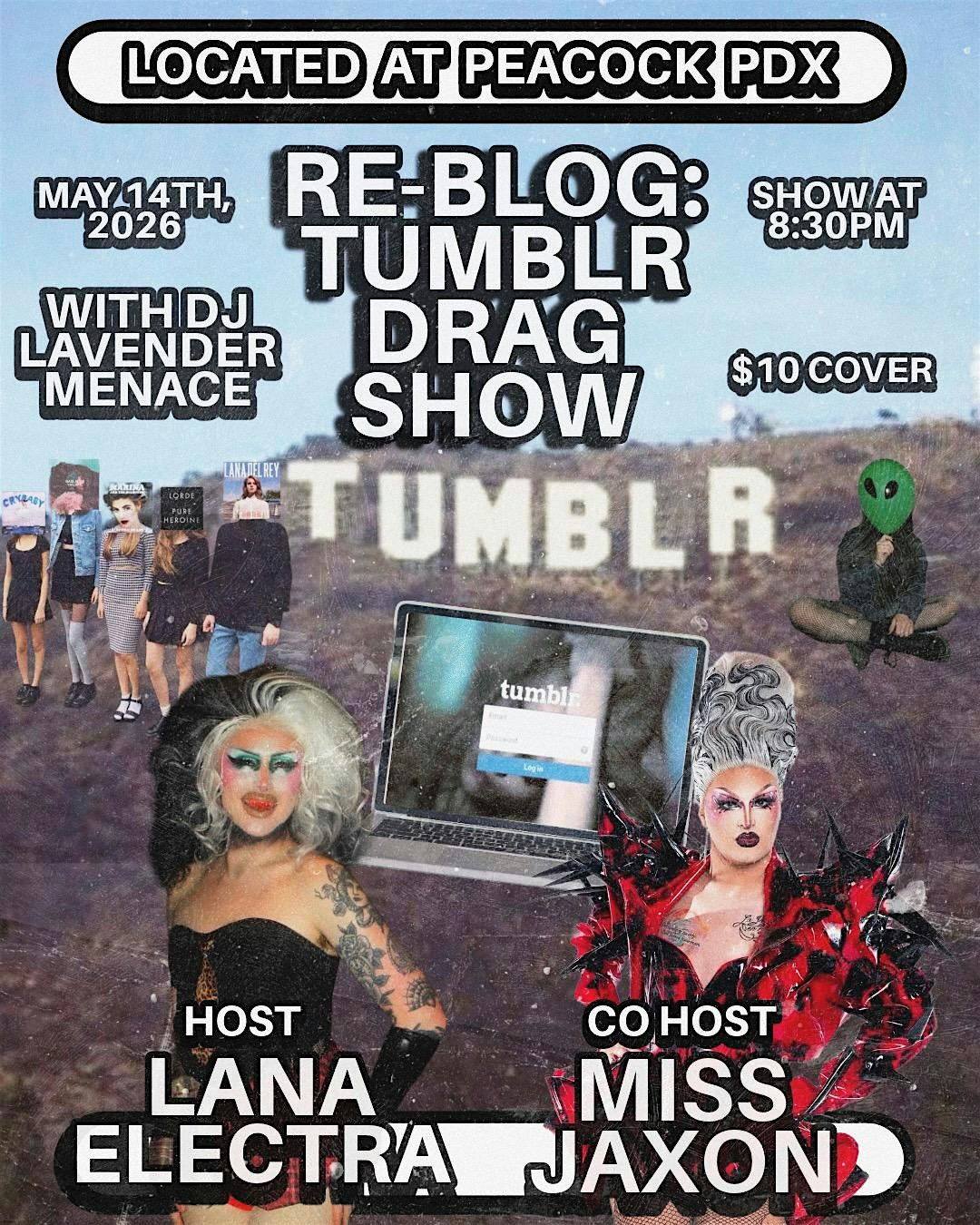 Join Lana Electra and Miss Jaxon in celebrating the iconic era that Tumblr was - with local drag artist performing Tumblr HITS