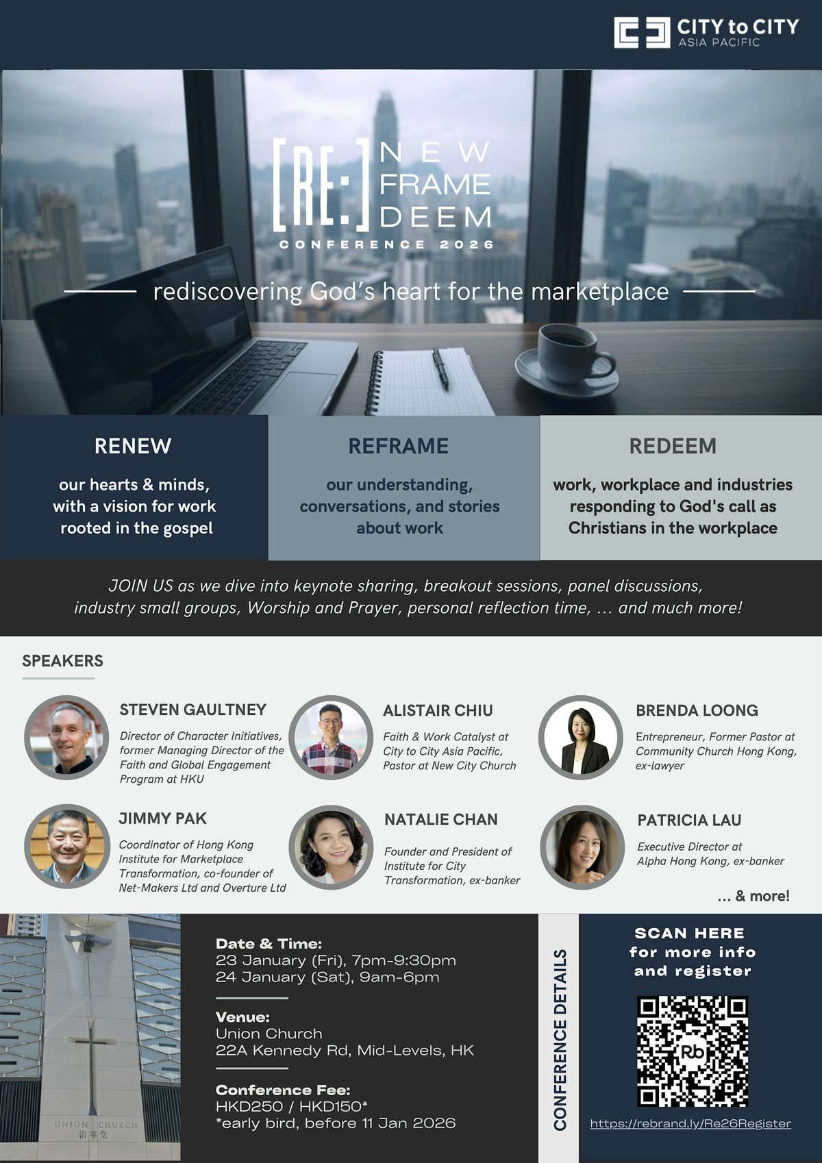 [RE:] Conference is a space for our city to reconnect our work with our faith, gain a renewed sense of our callings from God, and discover God’s heart for the marketplace.
