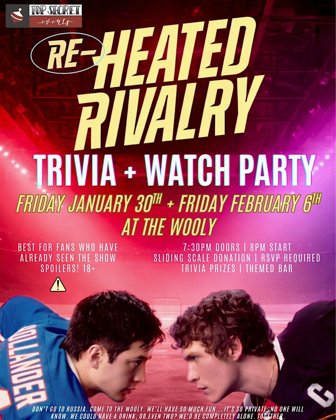 • Heated Rivalry + Pop Culture themed trivia (unnecessary competitiveness and niche team names encouraged) We recommend teams sized 5-10 people, but more or less is okay too!