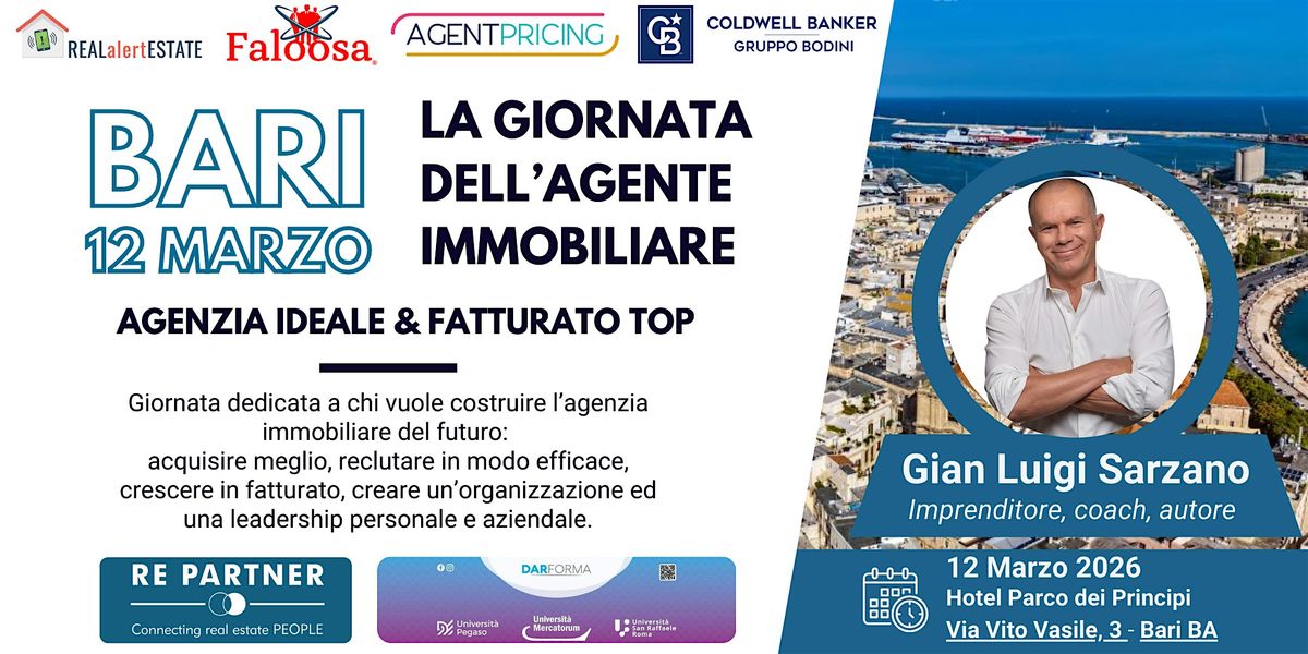 RE Partner Puglia – La giornata dell’Agente Immobiliare è un evento formativo ad alto valore dedicato ai professionisti del settore che vogliono crescere, strutturarsi e aumentare il proprio fatturato in modo sostenibile.