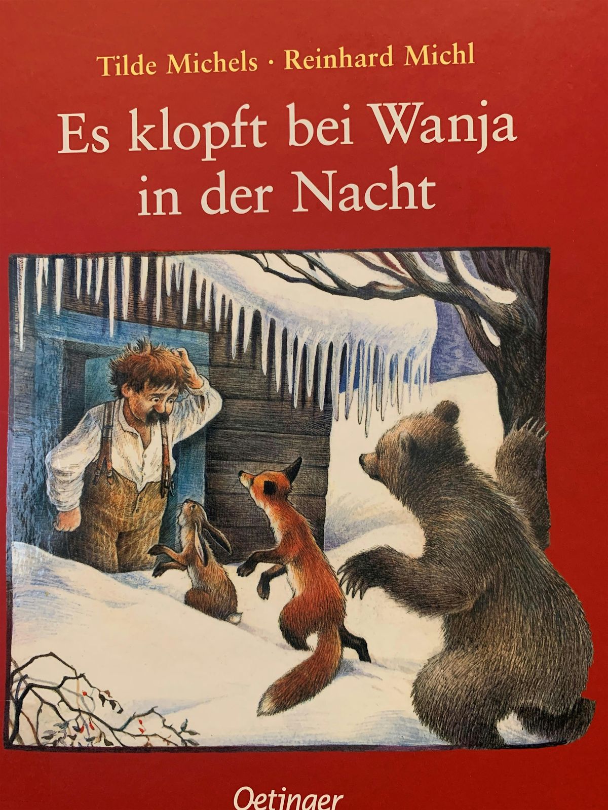 "There's a Knock on Vanya's Door" by Tilde Michels is a timeless picture book classic that tells the story of an unusual and heartwarming encounter on a cold winter night: That night, a freezing hare, a hungry fox, and later even a giant bear seek refuge in Vanya's small hut. Despite their natural enmity, the animals promise to keep peace and share a room to escape the storm. This night not only changes their behavior toward each other, but also leaves an indelible impression on Vanya. When he wakes up the next morning and sees the footprints in the snow, he realizes that this special night was no figment of his imagination.