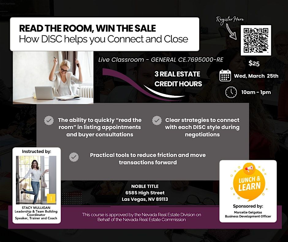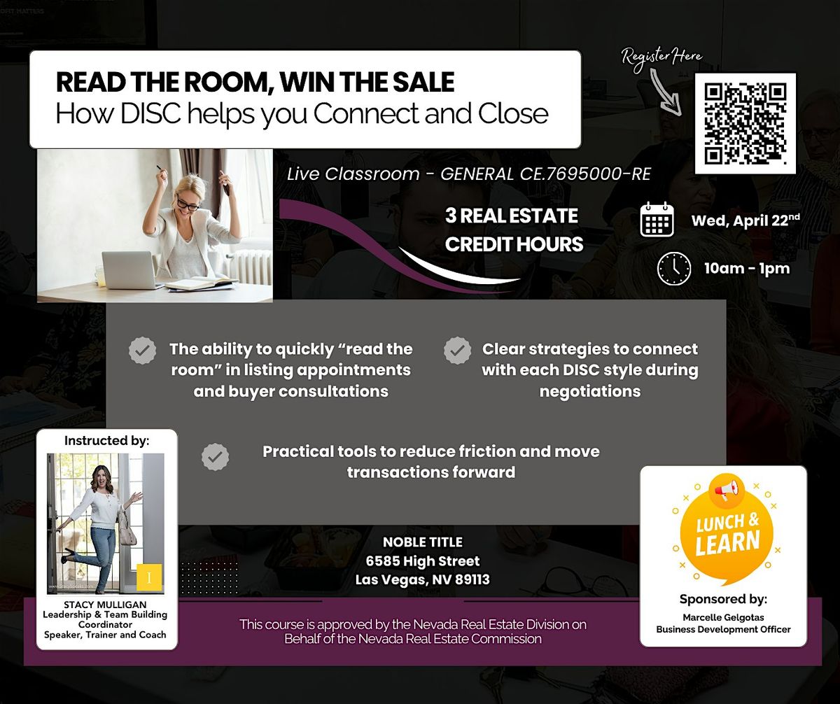 Join us in person for an engaging session where you'll learn to read the room and win more sales in real estate.