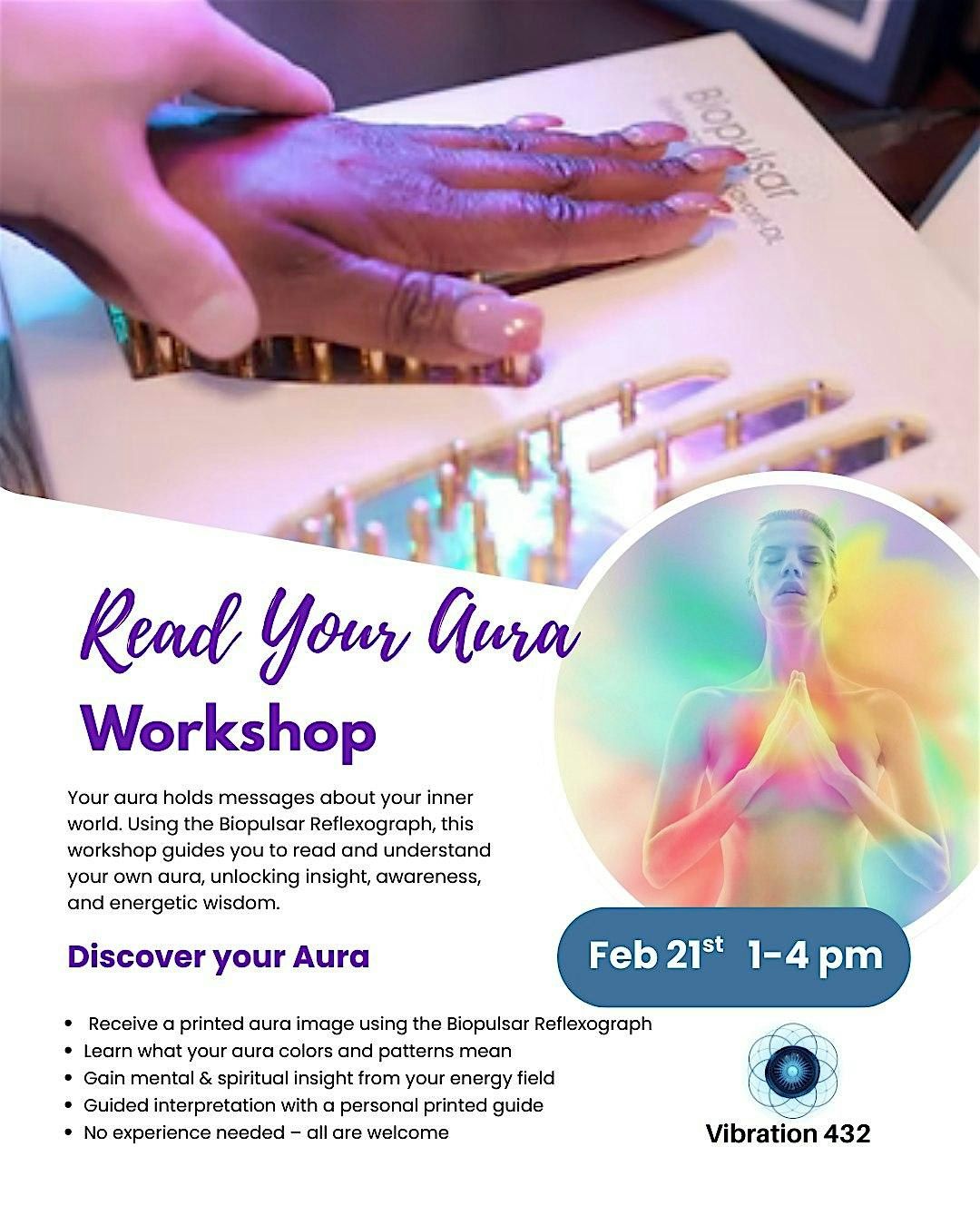See your aura in print and learn what it reveals about your mind, energy, and spirit in this guided, beginner-friendly workshop.About this Event