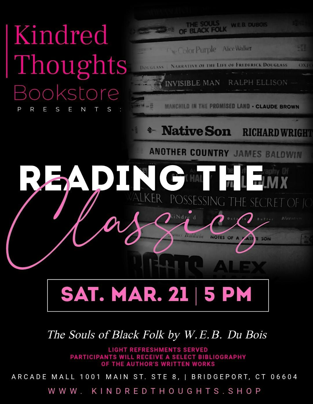 Get ready to dive deep into the powerful words of W.E.B. Du Bois in an interactive session exploring The Souls of Black Folks! Join us on Saturday, February 21 at 5pm as we discuss this classic as led by Cultural Historian, Michelle Black Smith. Don't miss this chance to connect over literature and share your thoughts on this iconic piece. See you there!