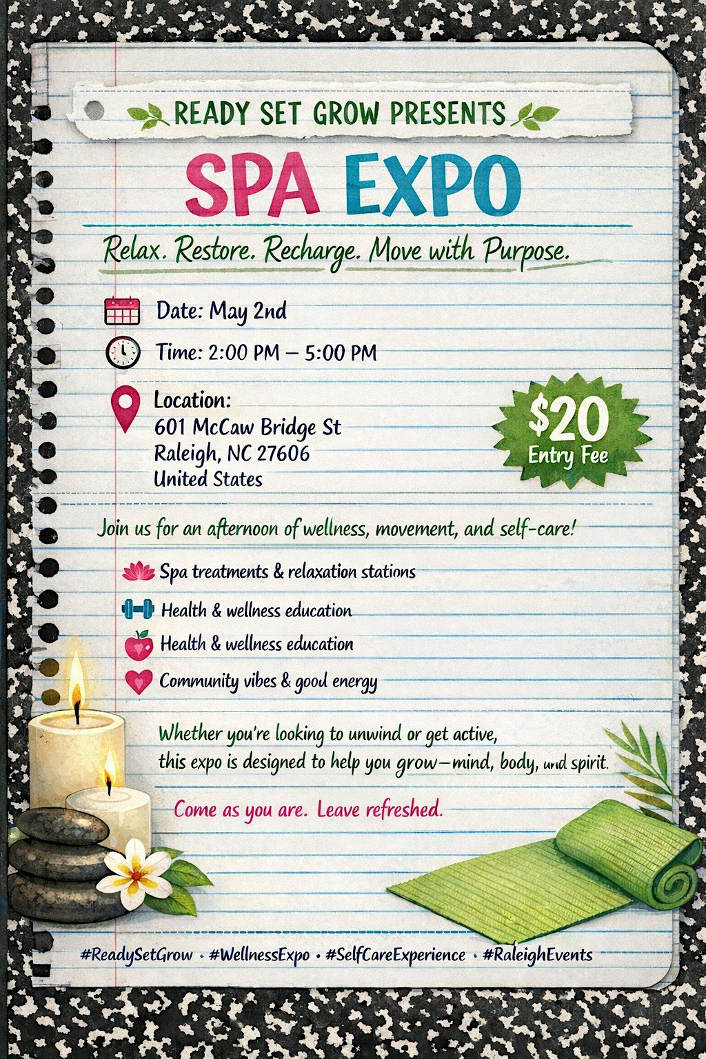 We’re excited to invite you to the Ready Set Grow Spa Expo, a wellness experience designed to help you slow down and pour back into yourself.