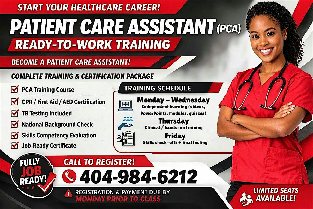 Get ready to jumpstart your healthcare career with our Ready to Work Patient Care Assistant (PCA) / Personal Care Home (PCH) Training Program. This comprehensive 40-hour training prepares individuals to provide safe, compassionate care for seniors and adults who need assistance in home care, assisted living, personal care homes, and private caregiving settings.