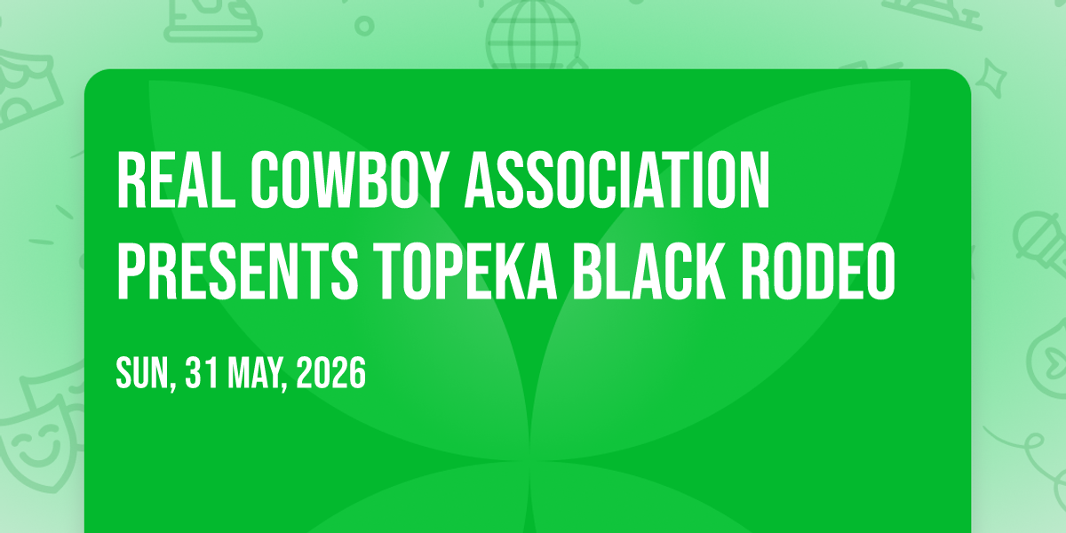 📍 Location: 39.0333, -95.6852🎉 Welcome to Real Cowboy Association Presents Topeka Black Rodeo, where the impossible becomes possible and dreams take flight! 🏛️ Join us at Stormont Vail Events Center in the heart of Topeka, KS for an event that will redefine your expectations. 📅 On May 31st, 2026 at 12:30 AM, witness the transformation of space and time into something truly magical. ✨ It's a curated experience combining the best of innovation, entertainment, and community spirit, creating moments that will be remembered for years to come. Whether you're a first-time visitor or a seasoned enthusiast, prepare to be amazed. 🎊 Book now to ensure your place in this unforgettable experience!