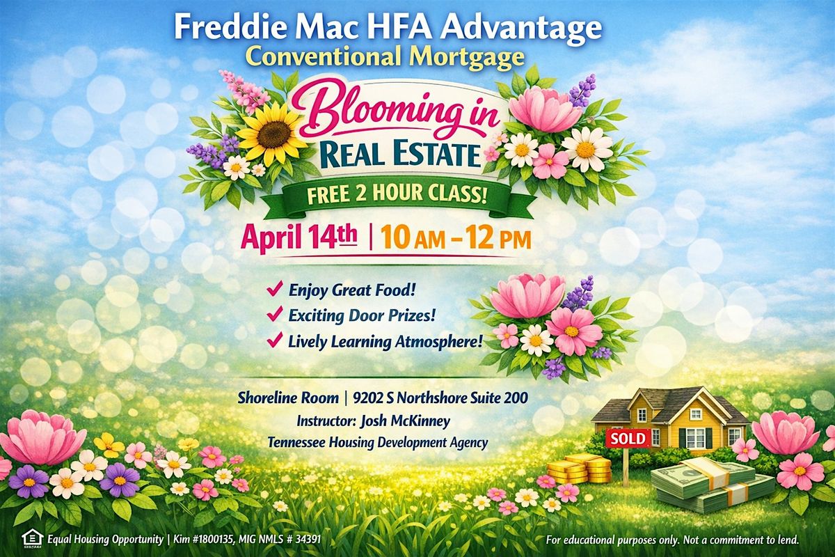 Blooming into Real Estate with Real Estate Accelerate! Join us on April 14th from 10 AM–12 PM for a fun, fast‑paced dive into the Freddie Mac HFA Advantage Conventional Mortgage program that will boost your knowledge and help you better serve your clients. Enjoy great food, exciting door prizes, and a lively learning atmosphere you won’t want to miss!