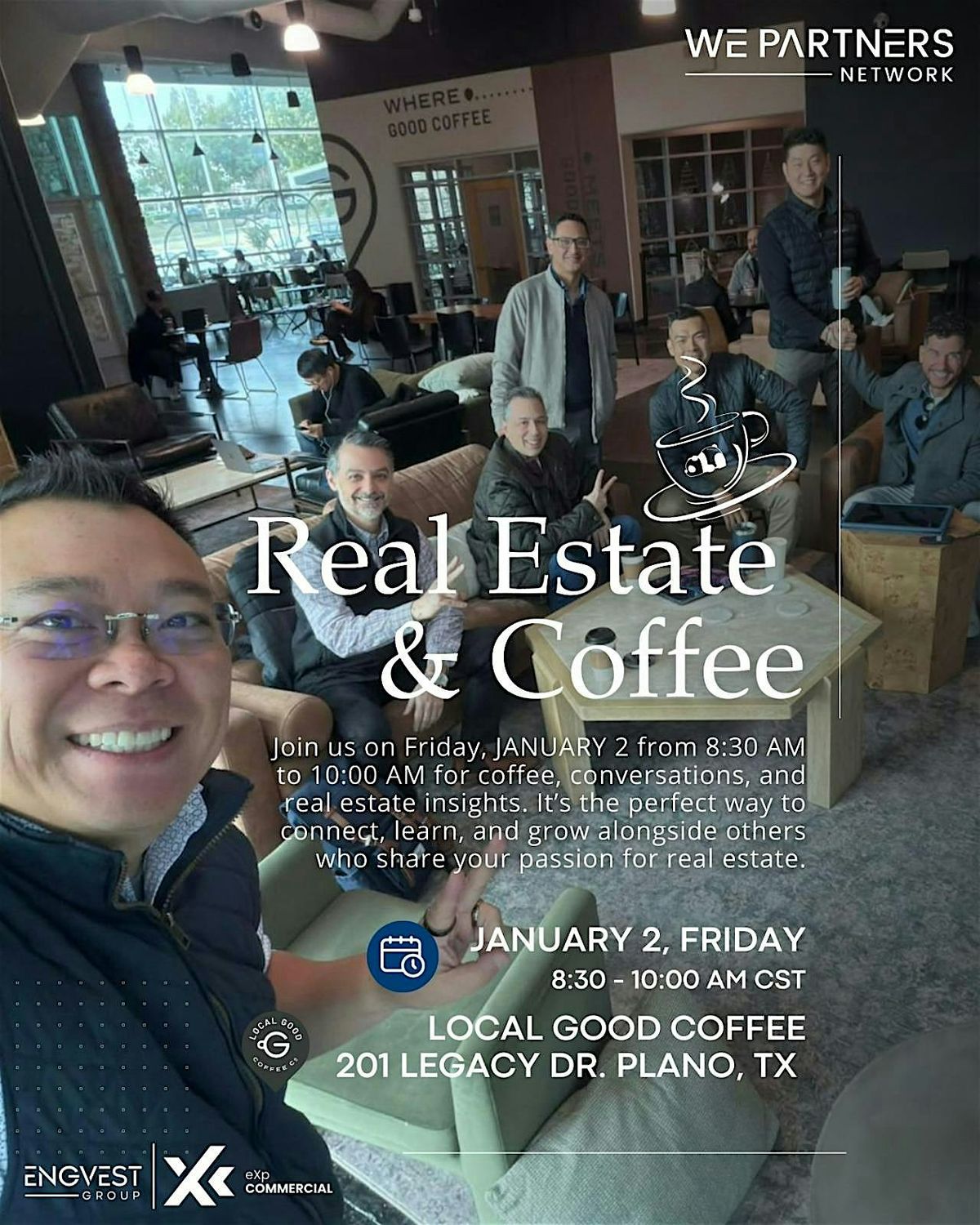 Join us for "Real Estate & Coffee" every Friday from 8:30 AM to 10:00 AM for an invigorating morning of insights, networking, and delicious coffee!