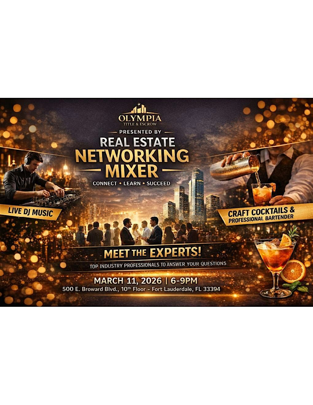 Join us for a fun evening mixing and mingling with the best in South Florida real estate! Whether you're a seasoned pro or just diving in, this is the perfect chance to network! Pick the brains of our Professional Featured Guests, who are well versed in: Firpta, FinCen, and 1031 exchange. Keeping it fun, we have a live DJ, Private Bartender- serving up craft cocktails, door prizes, trivia, and some magic tricks to blow your mind!