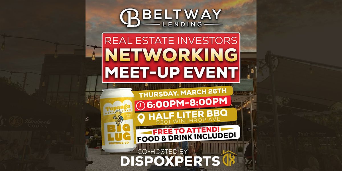 Come join Beltway Lending and Dispoxperts for another night of networking with fellow real estate investors at Half Liter BBQ. This is a great opportunity to meet like-minded individuals, share experiences, and maybe even find your next investment partner. Whether you're a seasoned pro or just starting out, all are welcome! Don't miss out on this chance to expand your network and grow your business.