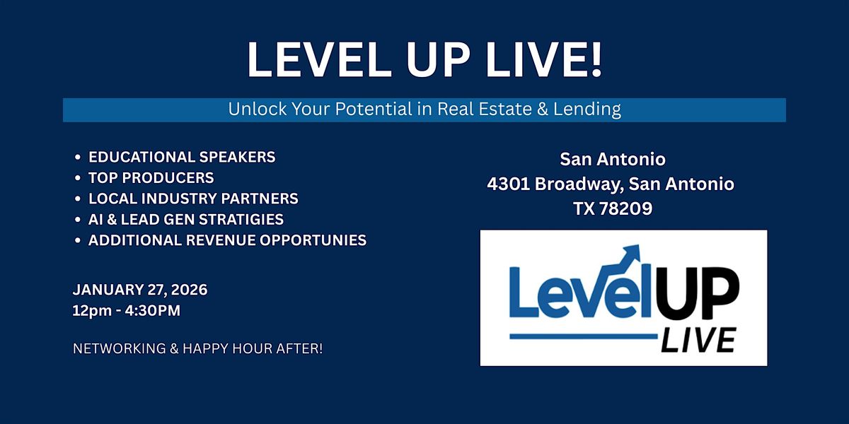 Level Up Live is a high-impact experience for mortgage professionals, real estate agents, and individuals pursuing their license who are ready to elevate their business.
