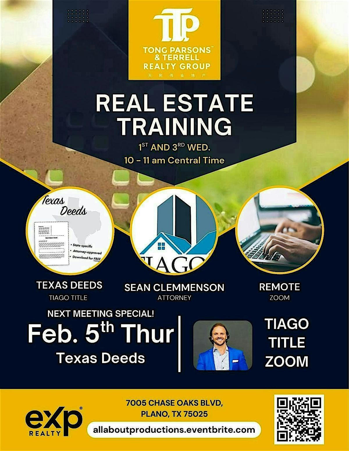 Join Tong Parsons & Terrell Realty Group for our ongoing Real Estate Training series, held every 1st and 3rd Wednesday from 10:00–11:00 AM (Central Time).