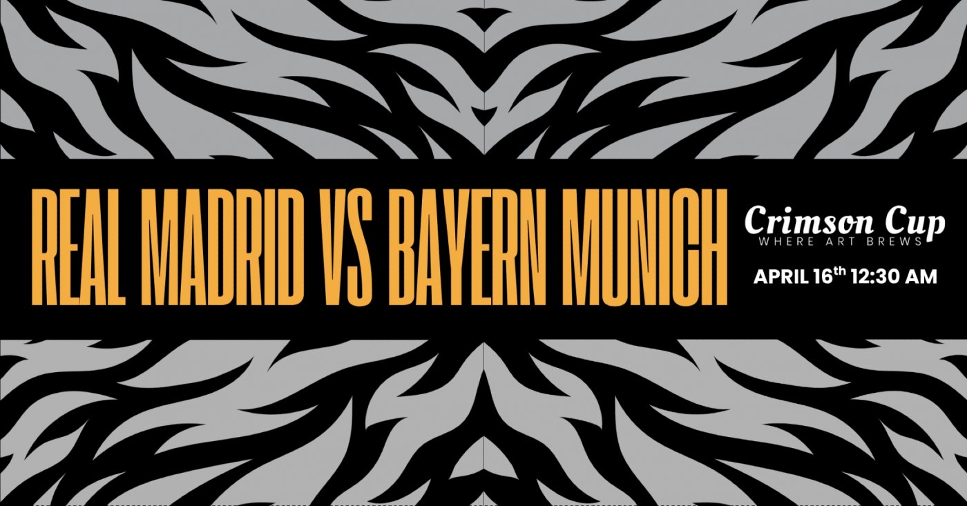 Step into the heart-pounding excitement of football as we bring you Real Madrid vs Bayern Munich LIVE SCREENING at Crimson Cup Cafe!