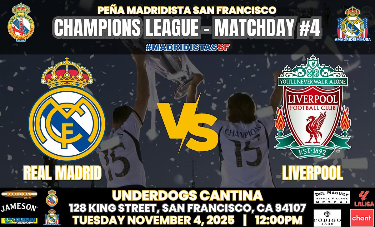 Peña Madridista San Francisco & Golden Road Brewing proudly invite you to join us at Underdogs Cantina to watch the UCL match between REAL MADRID vs LIVERPOOL.