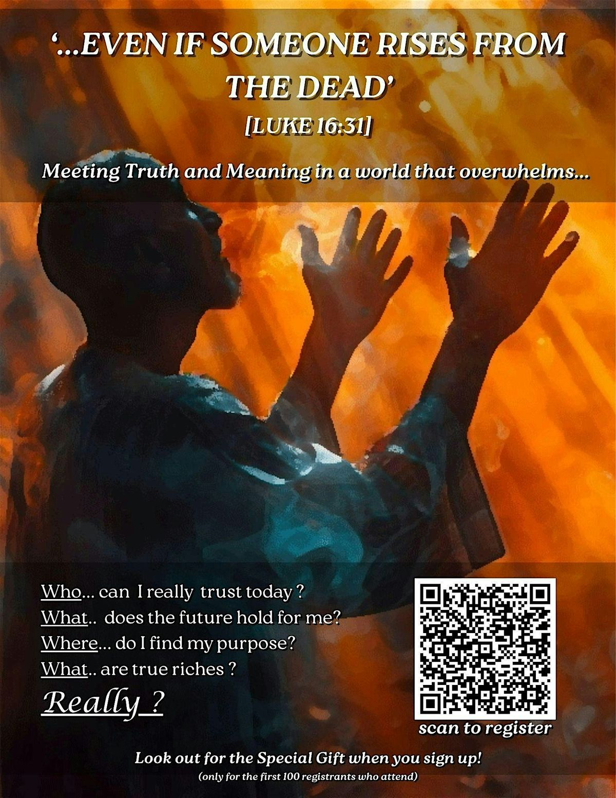 If you are a seeker, join us on Saturday, April 11th 2026 at 6:30 P.M. for the second entry to our REALLY? series - an interactive time where we dive into scripture to understand God's message to our generation and times!