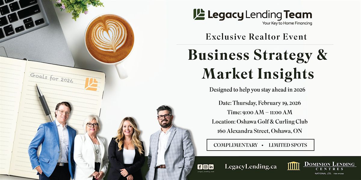The Legacy Lending Team is pleased to invite you to a complimentary Realtor Event focused on Business Strategy and Local Market Insights—designed to help you sharpen your approach and stay ahead in 2026.