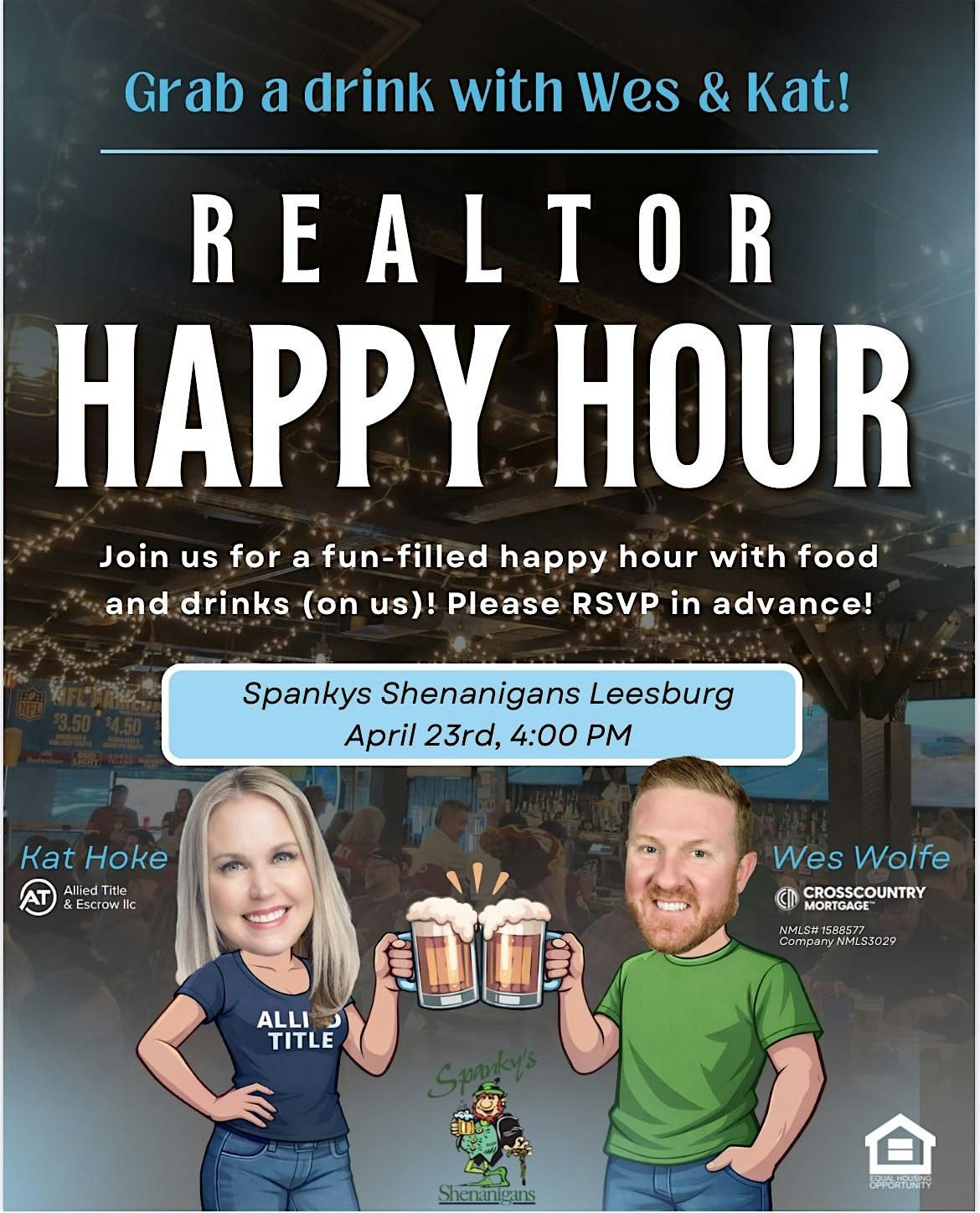 Join Wes & Kat for a chill Realtor Happy Hour, hosted by Cross Country Mortgage & Allied Titleβ good vibes and great company!About this Event