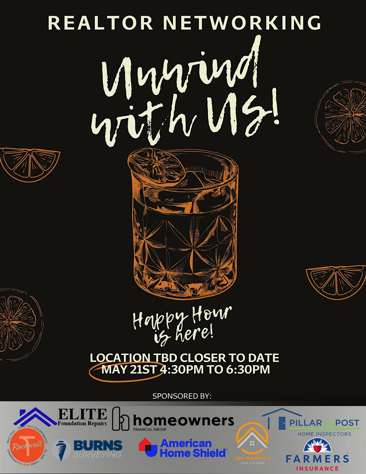 Calling all Realtors! Join us for our May Happy Hour. **NOTE: Location TBD closer to date.** Location May Change.