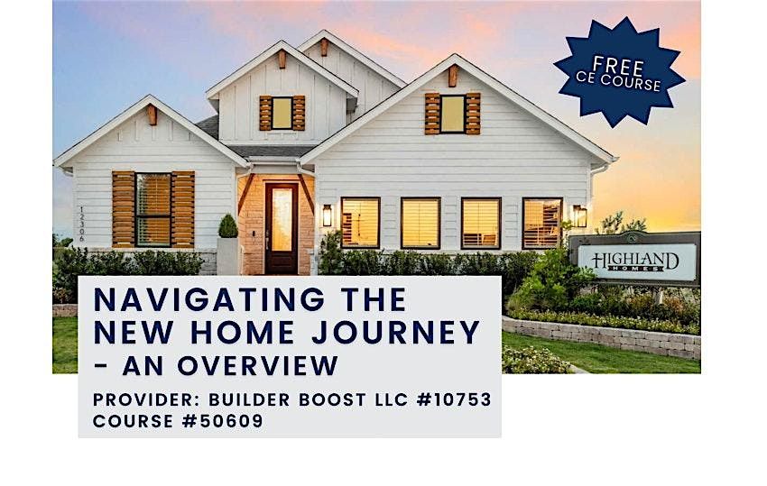 Navigating the New Home JourneyCourse #50609 - 1 Hour CE Credit | Provided by: Builder Boost – Provider #10753