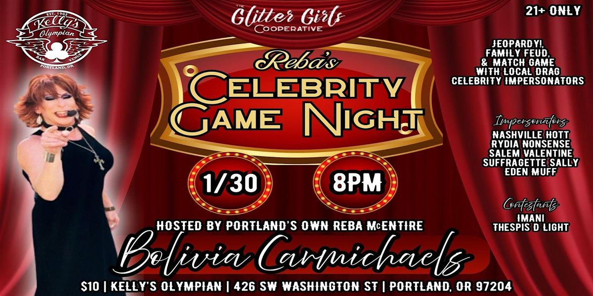 Portland's own Reba McEntire - Bolivia Carmichaels - brings you a night of Jeopardy!, Family Feud, and Match Game with local drag celebrity impersonators!