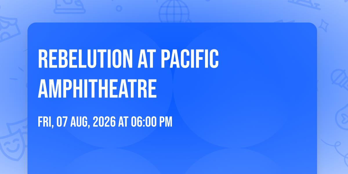 ✨ Experience the magic of Rebelution at Pacific Amphitheatre, where moments become memories that last a lifetime! 🏛️ The iconic Pacific Amphitheatre in Costa Mesa, CA sets the perfect stage for an unforgettable celebration on August 7th, 2026 at 06:00 PM. 🌟 It's been a curated experience that brings together the best of entertainment and innovation, creating an atmosphere of wonder and excitement. From the moment you arrive, you'll be immersed in a world where the ordinary transforms into the extraordinary. 🎊 Book early to secure your place in what promises to be an event that will be talked about for years to come!