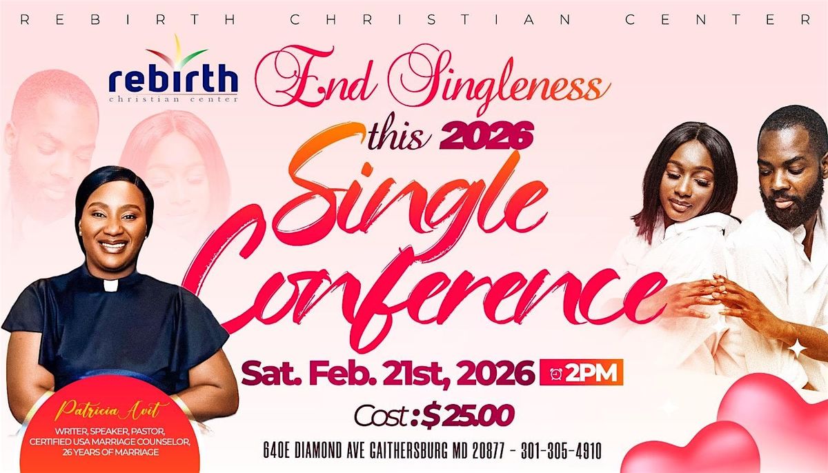 Welcome to the Rebirth Christian Center Singles Conference: End Singleness This 2026! Join us at 640 E Diamond Ave on February 21, 2026 at 2:00 PM (Eastern Time) for an uplifting experience. Let's come together to connect, grow, and embrace this journey of faith. Don't miss out on this opportunity to be equipped with the word of God. Mark your calendars and get ready for a day filled with inspiration and fellowship. See you there!