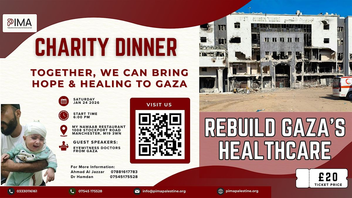 Join us for a powerful and inspiring evening dedicated to supporting lifesaving medical projects in Gaza. This charity dinner, organised by PIMA – Palestine International Medical Aid, brings our community together to stand with the wounded, the displaced, and the medical teams working under unimaginable conditions.