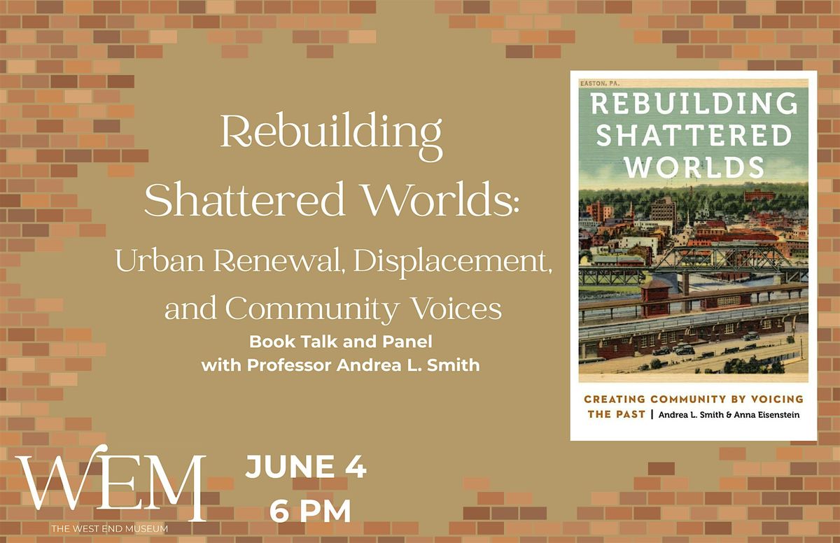 Urban renewal demolished vibrant and well-loved neighborhoods across the nation in cities large and small. Join the West End Museum as we host anthropologist Professor Andrea Smith of Lafayette College as she discusses her book on urban renewal’s effect on the mid-sized Pennsylvania city of Easton and the long lasting impacts felt by those displaced in its wake.