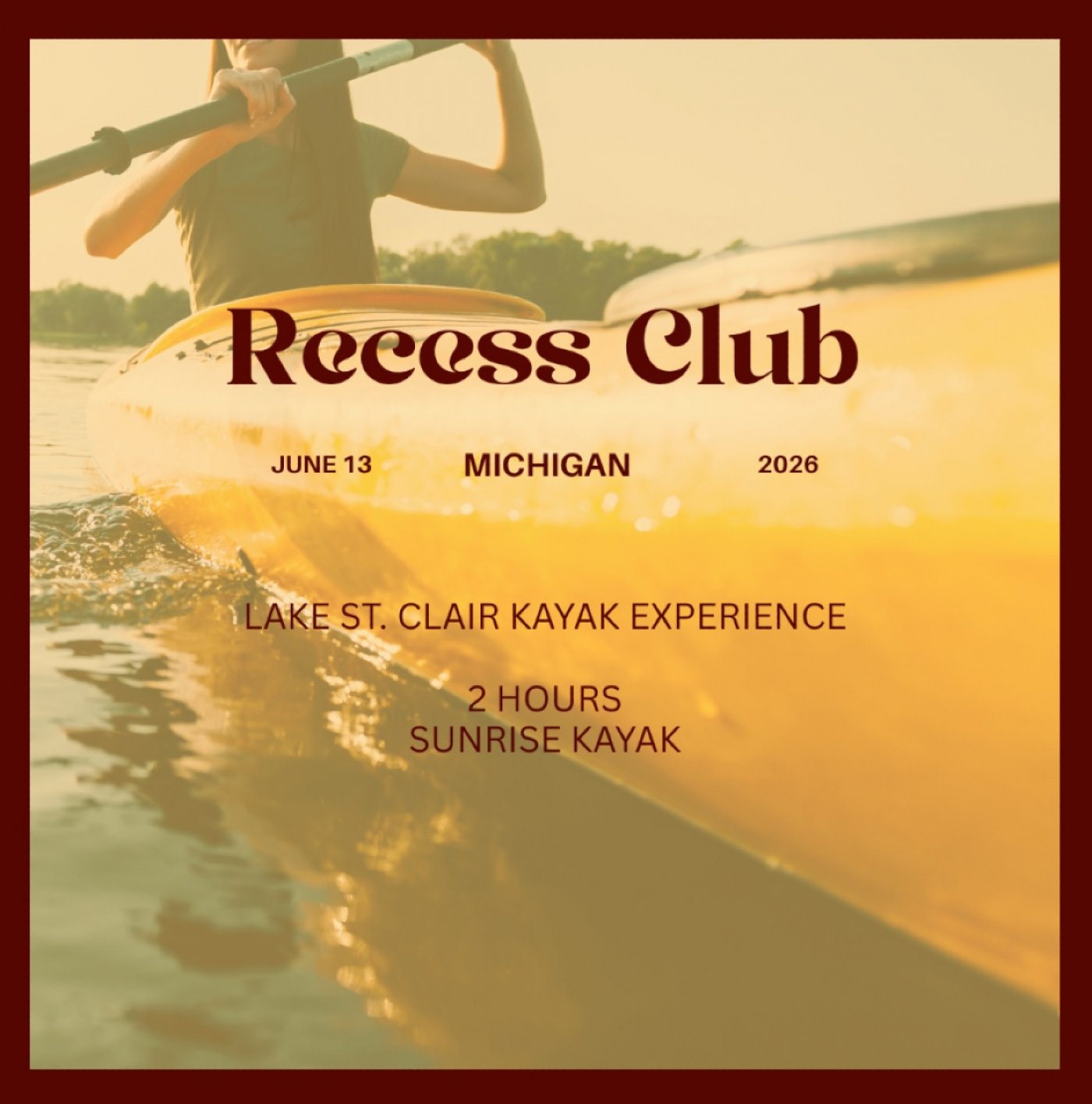 Meet at sunrise in Chesterfield and push off into the still waters on Lake St. Clair. For two peaceful hours, you paddle, breathe, reconnect, and unplug! Just water beneath you, sky waking up, and a community choosing to reclaim recess together.