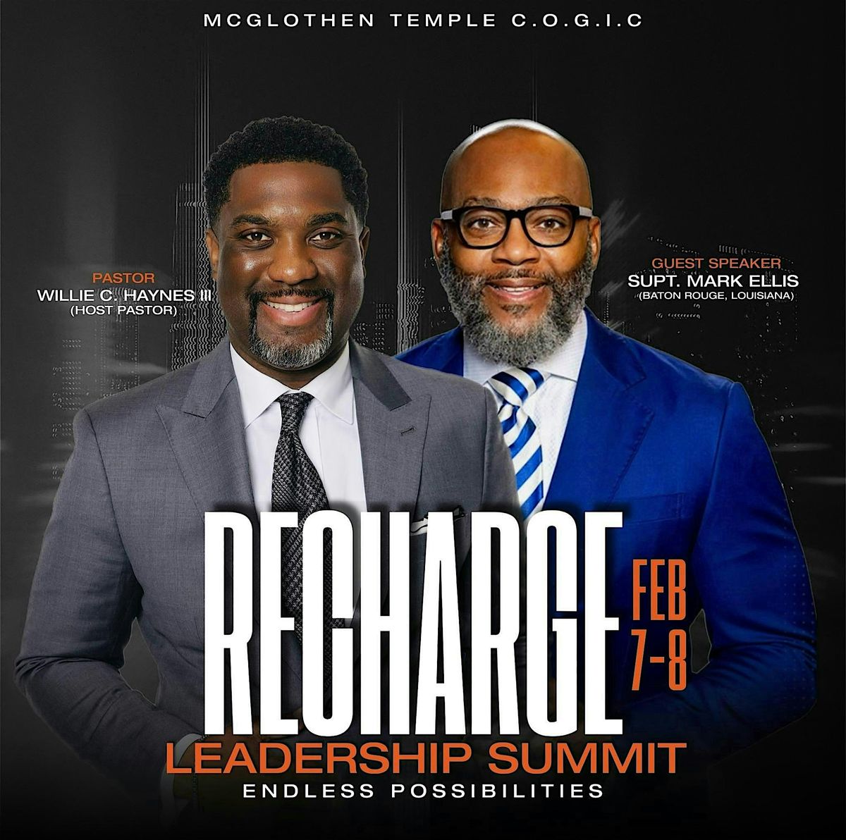 This summit brings together pastors, ministry leaders, emerging leaders, entrepreneurs, and those who serve in leadership roles to be poured into spiritually, practically, and strategically. Through dynamic worship, powerful teaching, and intentional leadership sessions, attendees will gain tools to lead with clarity, confidence, and purpose.