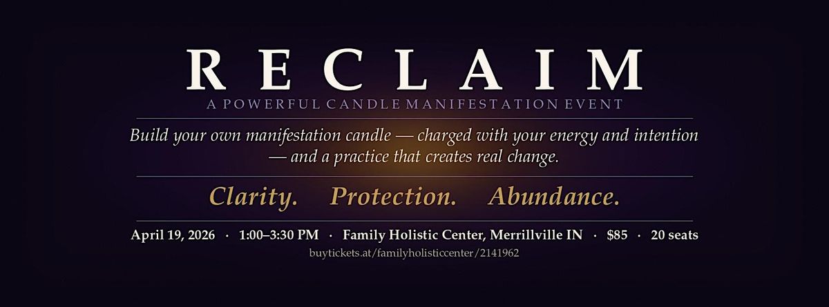 RECLAIM: A Powerful Candle Manifestation Event is a hands-on workshop where you'll leave with a Reiki-charged candle dressed with your own intention, crystals, herbs, and a practice you can carry forever.