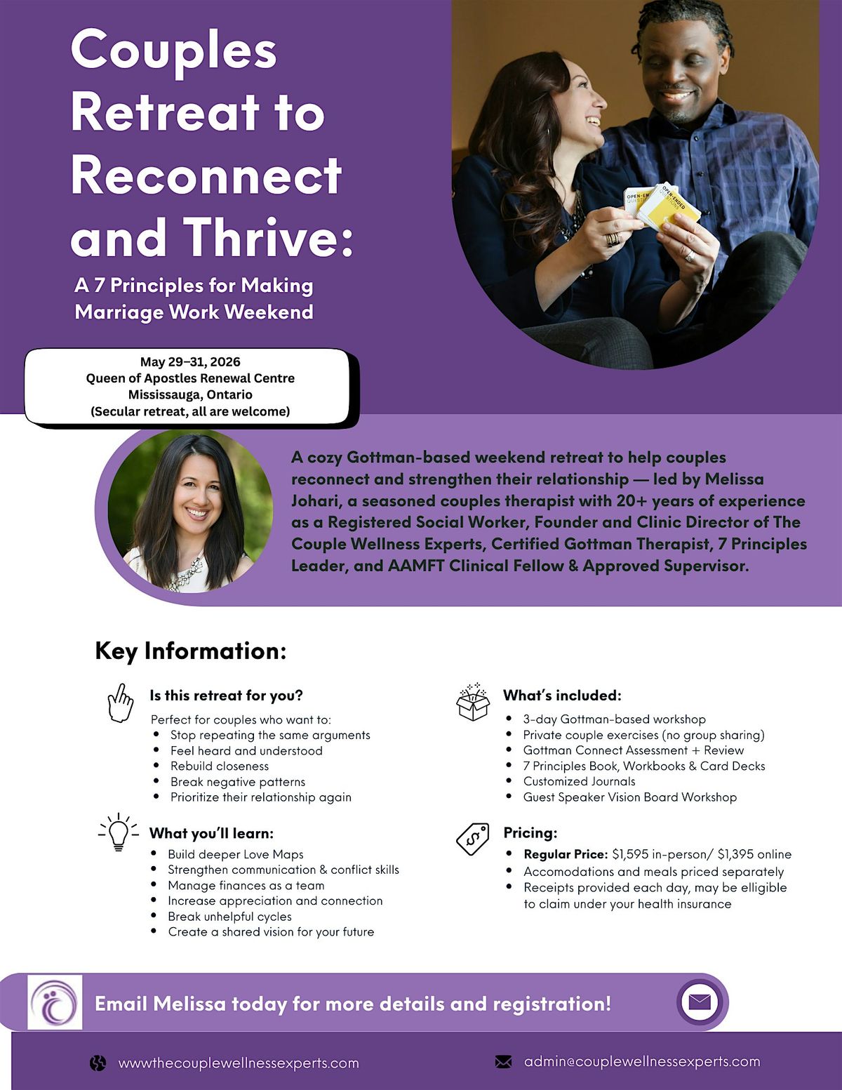 Rooted in Dr. John Gottman’s 50+ years of research, this retreat helps couples: