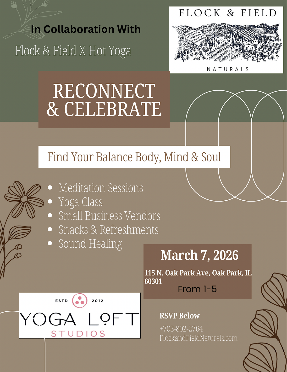 Join Flock & Field Naturals and Yoga Loft Studios for an uplifting wellness gathering designed to help you reset, recharge, and reconnect with your mind, body, and spirit.