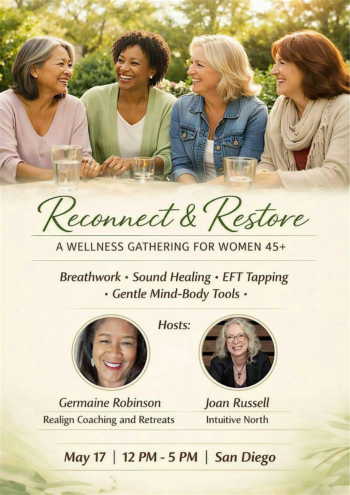 Have you been curious about nervous system regulation but didn’t quite feel at home in traditional wellness spaces such as yoga studios? This event was created with you in mind. Join us for a nurturing and informative Women’s Wellness Experience designed specifically for women 45+ who are ready to prioritize their health in a supportive, relatable environment. Together, we’ll explore practical tools for calming the nervous system, including an introduction to Jin Shin Jyutsu and Emotional Freedom Technique (EFT)and more. You’ll gain insight, experience gentle practices, and connect with like-minded women on a similar journey. Lunch will be provided, giving you time to relax, nourish your body, and enjoy meaningful conversation. We’ll close the experience with a deeply restorative sound bath, leaving you feeling grounded, relaxed, and renewed. This is more than an event—it’s a space to learn, connect, and invest in your well-being.