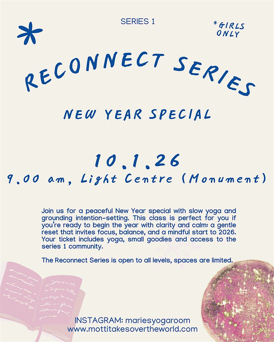 Join us for a peaceful New Year special with slow yoga and grounding intention-setting. This class is perfect for you if you’re ready to begin the year with clarity and calm: a gentle reset that invites focus, balance, and a mindful start to 2026. Your ticket includes yoga, small goodies and access to the series 1 community.