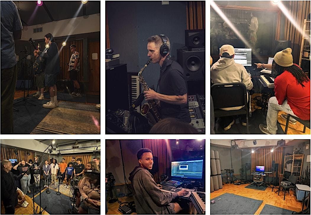 Our Stanford Recording Arts Workshop ensemble has Stanford’s studio booked 24 hours a day for two weeks straight. Outside official Workshop course hours, students often spend the evenings, early mornings and weekends in the studio together helping each other track and hone their dream creations. The group often goes to lunch and dinner together right on campus. Longterm friendships and music connections are built. Students who attend online may still collaborate with in-person students; we’ve had remote students contribute bass tracks, synths, mixes and more to the collective album, and we trade off holding the Zoom phone for remote ensemble members to keep you right in on the sessions.