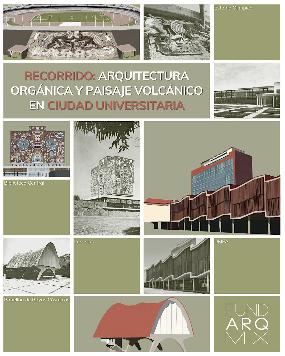Caminaremos por los alrededores de Las Islas, hablaremos de historia, materiales, integración al paisaje y del valor patrimonial que convirtió a CU en Patrimonio Mundial por la UNESCO.