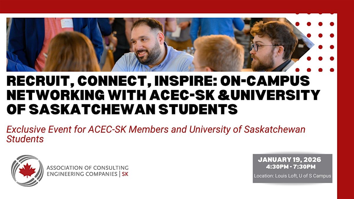 ACEC-SK is hosting a member-exclusive networking event with students from the University of Saskatchewan on campus. This is your chance to: