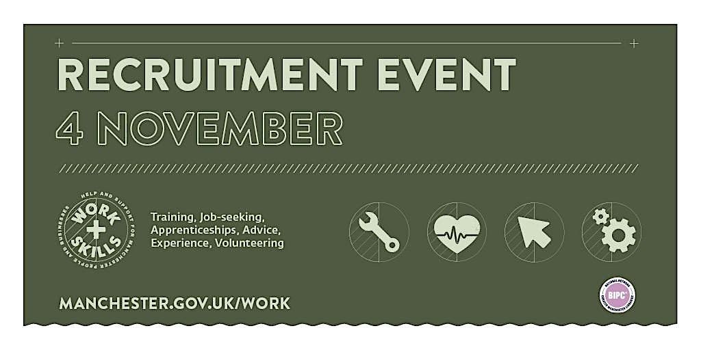 Are you a Manchester resident looking for a job? Book your slot on our forthcoming recruitment event, where 15+ multi-sector employers will be on hand with jobs ready to be filled. Confirmed employers include Manchester City Council, Bluebird Care, The Royal Navy Submarine Service, Cooperative bank, Compact Security Limited and many more.